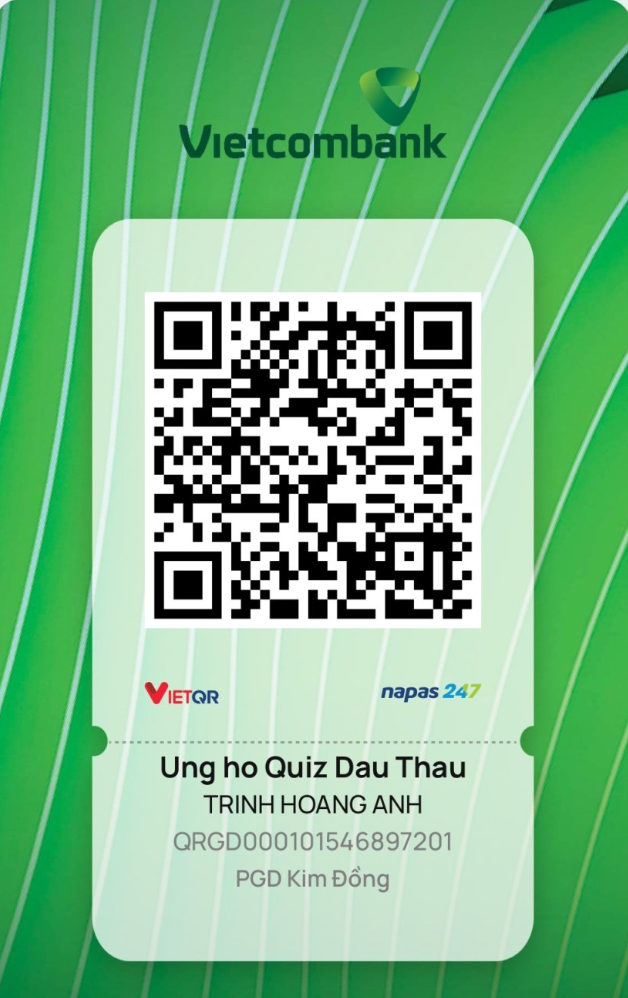 Ghi chú chuyển khoản: Ung ho Quiz Dau thau